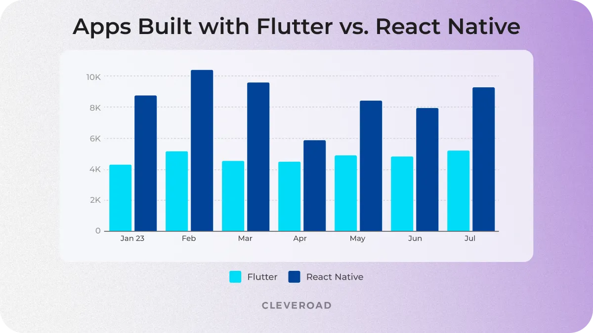 Apart from boosting cost-effectiveness, using Flutter may enable you to use one of the most popular and convenient platforms for digital solution development. Below, you can examine the graph that represents the popularity of Flutter vs. React Native: