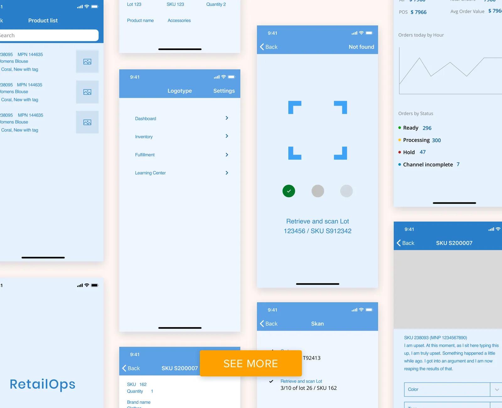 While Business Analysts work on the specification, UI/UX designers creates wireframes. Designers arrange primary elements like buttons and images on each screen. We also create a linked prototype to show the app’s logic.