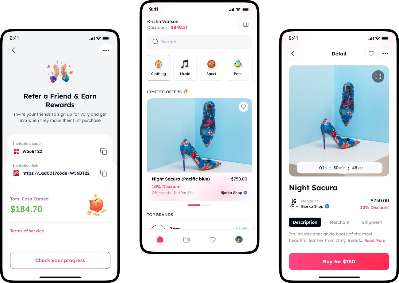Referral program is available in the solution. Users can participate in the referral program and receive a bonus for recommending the platform to a friend (a new user) or a business (a new merchant). This feature aims to motivate users to be active, driving platform success through user acquisition, engagement, and trust building.