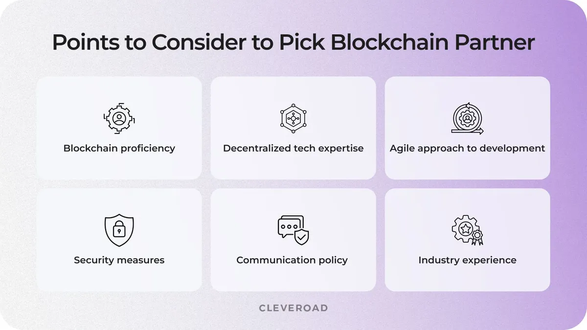 Choosing the right software development company for your blockchain application is crucial for your project's success since the vendor's proficiency can impact the blockchain development cost. Here are key points to consider when looking for a blockchain development partner: